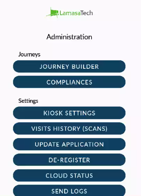 To send logs, please access the Administration menu by double-clicking or tapping on the blue taskbar along the top of the screen and entering the device password (the default is 123456).